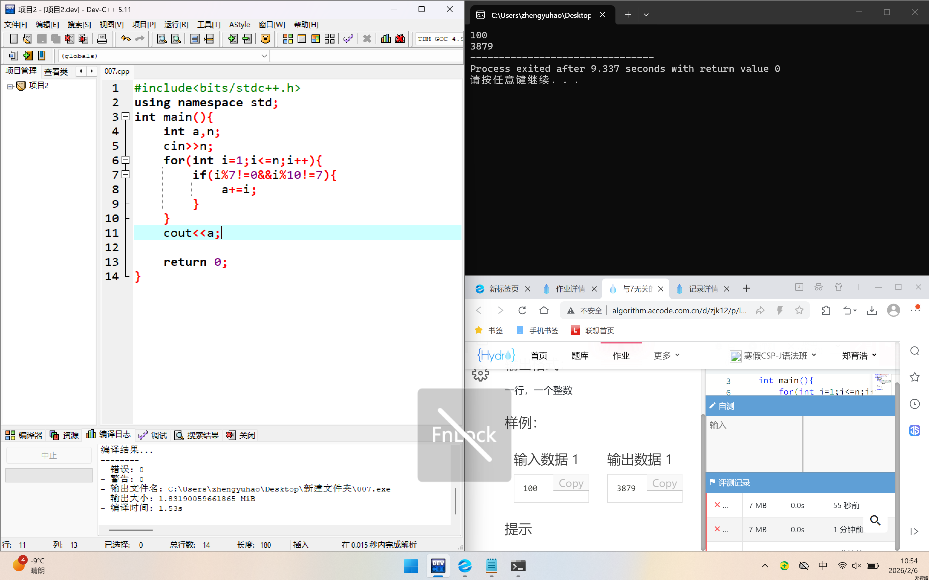 | 23ms | 6.6 MiB | C++14(O2) | 105 Bytes | 2026-2-3 19:52:53 | ||